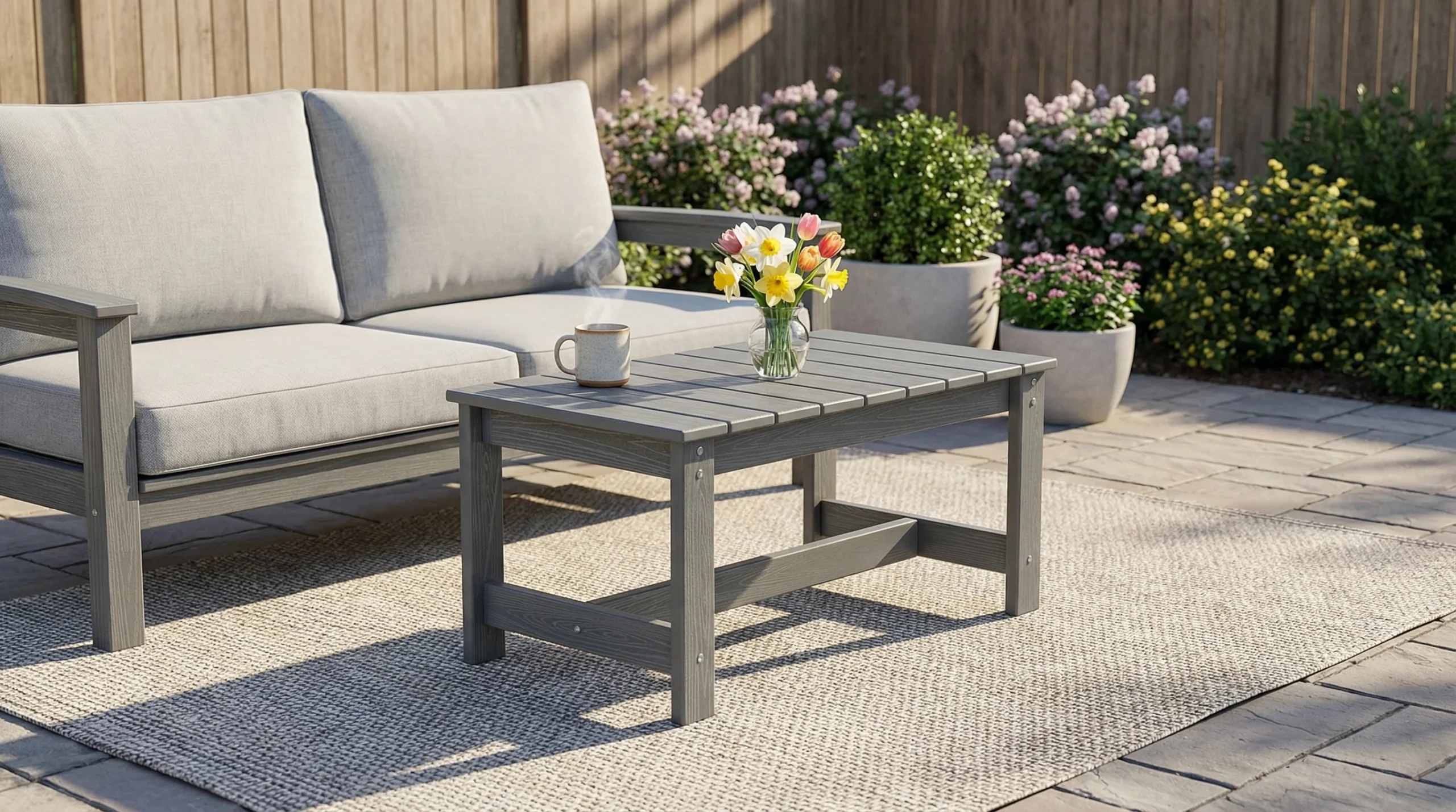 I set up the URBAN HDPE Outdoor Coffee Table on my deck and it’s been great for casual hangouts. The finish has a subtle wood grain texture you notice close up and the corners feel smooth, no rough edges. All the hardware was included and the legs felt very stable once tightened. Makes a solid spot for snacks beside my grill.