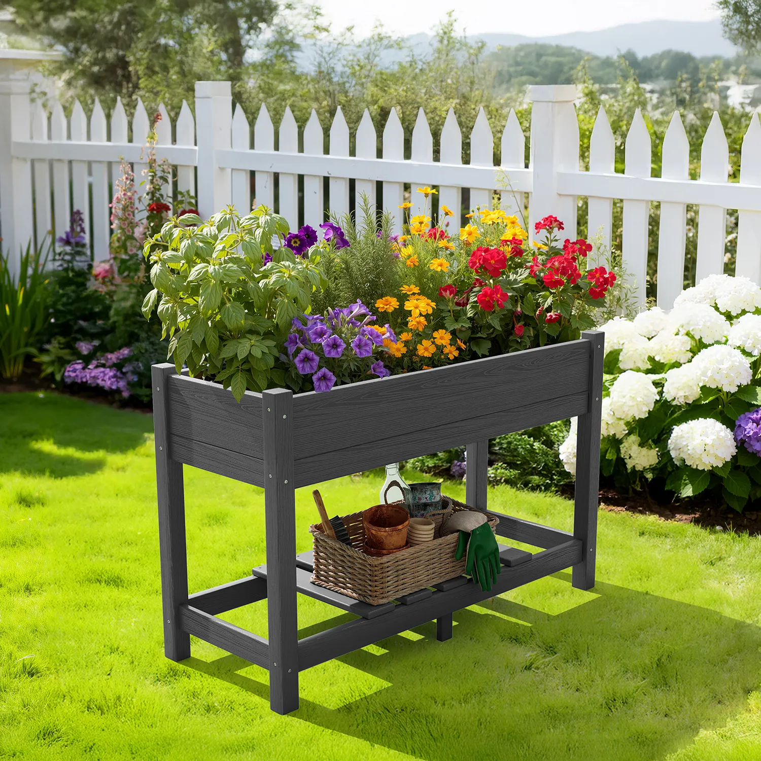 Outdoor Poly Raised Garden Bed with Shelf