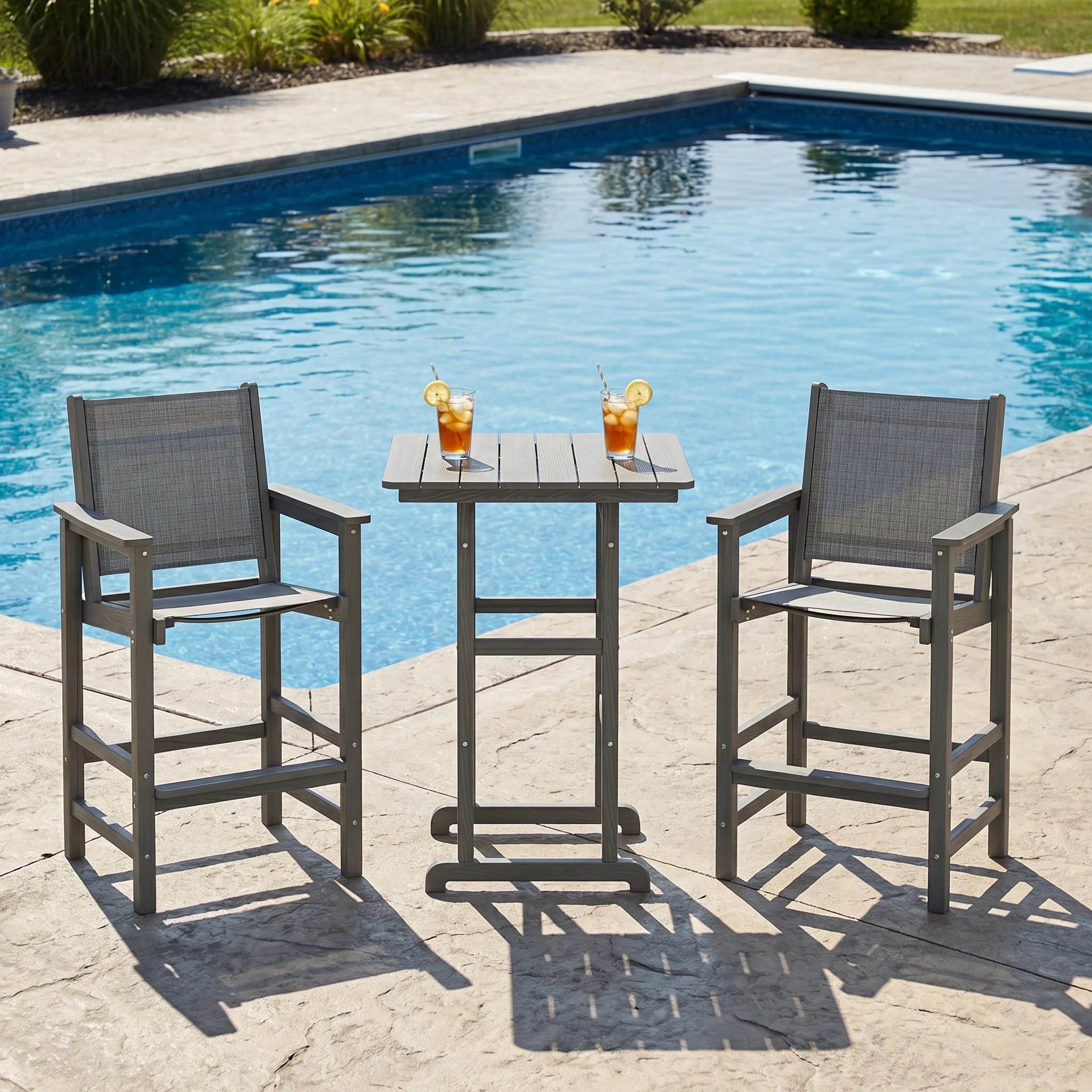 GRANGE 3-Piece Poly Textilene Bar Table and Chair Set