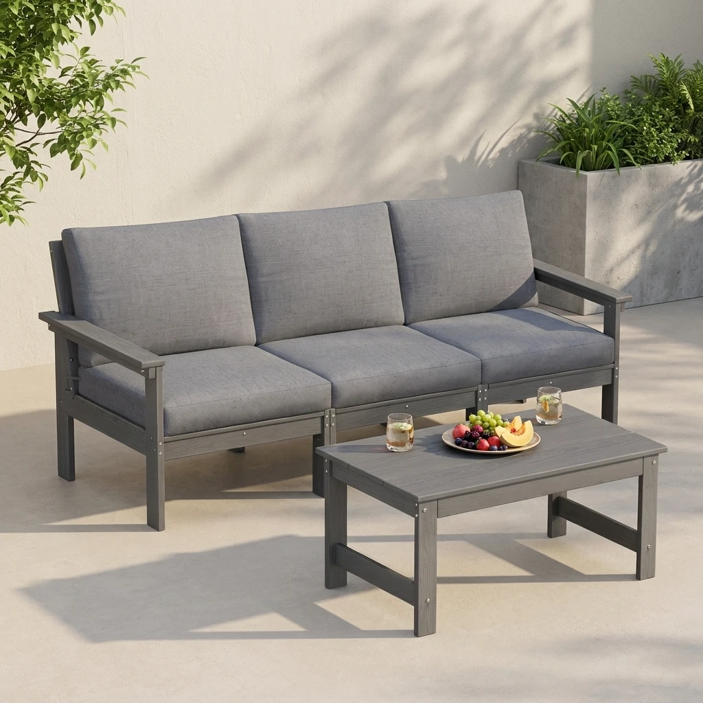 - Complete Outdoor Lounge Set: This set includes a spacious 3-seater couch and a matching coffee table, creating a comfortable and coordinated outdoor seating area.