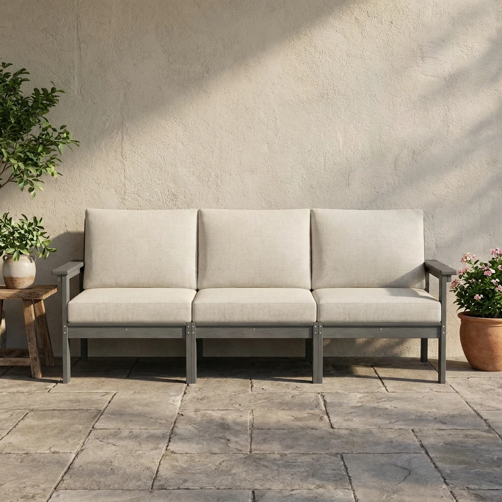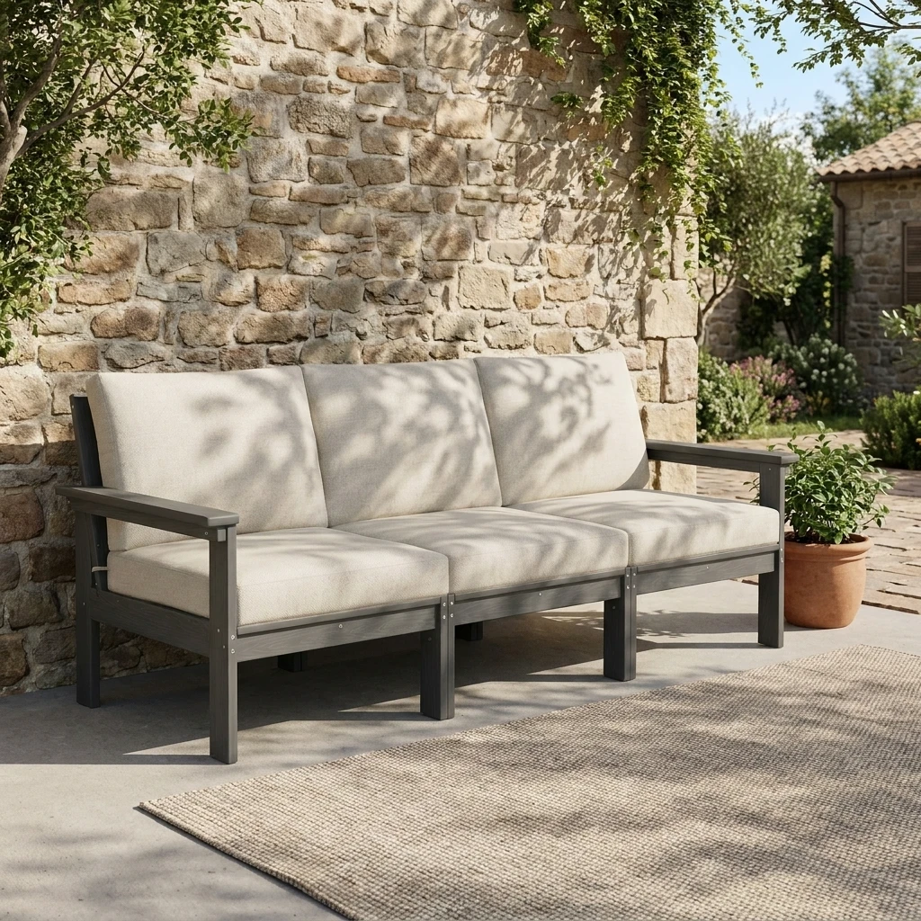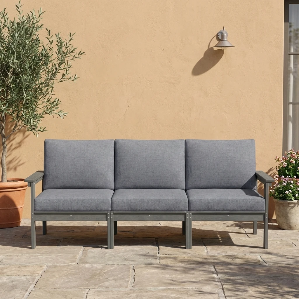 Upgrade your outdoor living space with the GRANGE 3-Seater Outdoor Couch, designed for comfort, style, and everyday relaxation. With its clean-lined frame, supportive armrests, and generously cushioned seat and back pillows, this sofa creates a welcoming place to unwind with family and friends. The spacious three-seat design offers plenty of room for lounging, conversation, and casual entertaining, making it a perfect fit for patios, porches, decks, and backyard setups. Blending modern simplicity with inviting comfort, the GRANGE couch brings an easy, polished feel to any outdoor seating area.