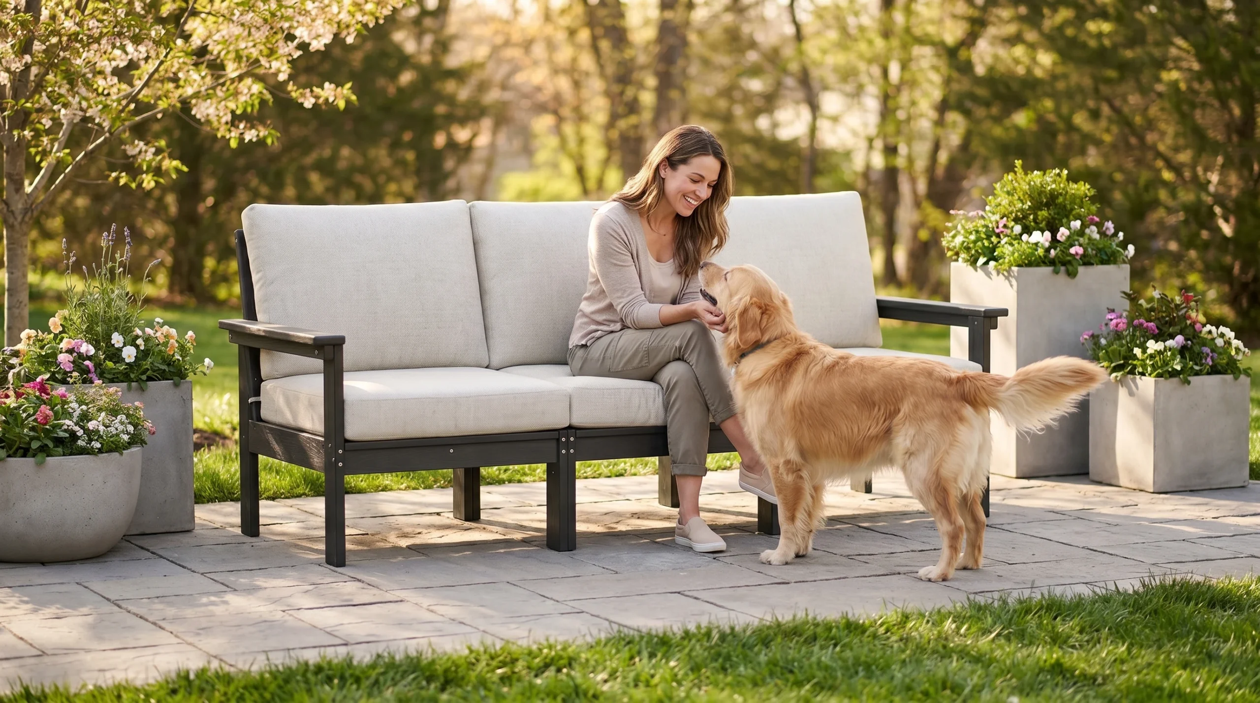 - Plush Cushioned Comfort: Generously padded seat and back cushions create a soft, supportive place for everyday relaxation and longer outdoor conversations.