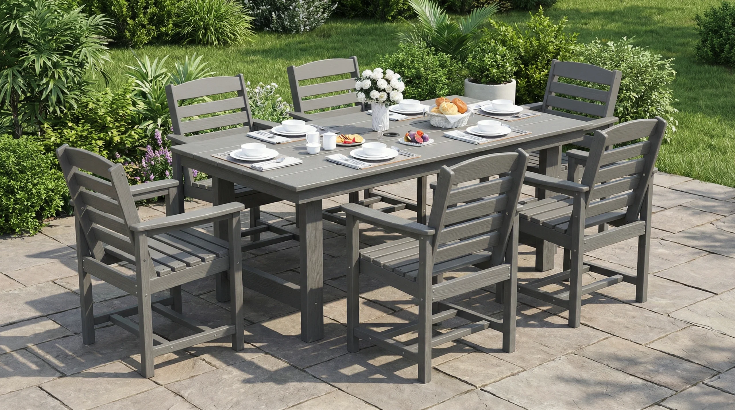 - Wooden Texture: With a realistic wooden texture, the poly outdoor dining table combines the aesthetic appeal of wood with the benefits of poly lumber.