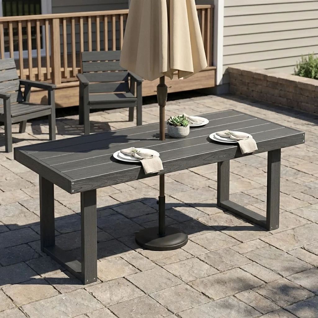Upgrade your outdoor dining space with the GRID HDPE Rectangular 30″ x 70″ Dining Table with Umbrella Hole. Featuring a sleek, modern silhouette and spacious tabletop, this table offers plenty of room for family meals, weekend gatherings, and open-air entertaining. The realistic wood-look texture adds warmth and style, while the built-in umbrella hole makes it easy to create a cooler, more comfortable setting on sunny days. Designed for both everyday function and clean visual appeal, the GRID dining table is a versatile centerpiece for patios, decks, and backyard spaces.
