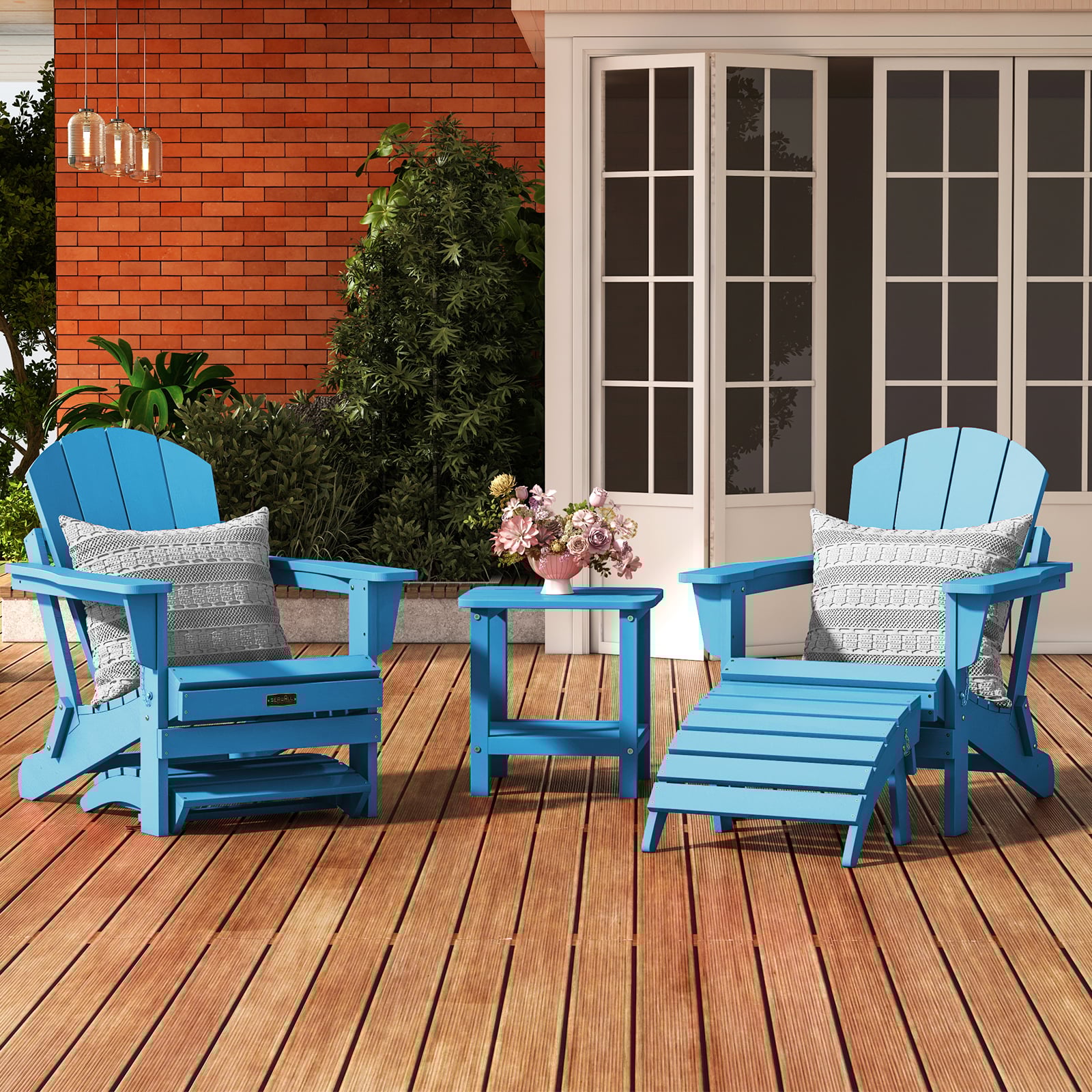 Modern Outdoor Adirondack Chair with Ottoman and Cushion