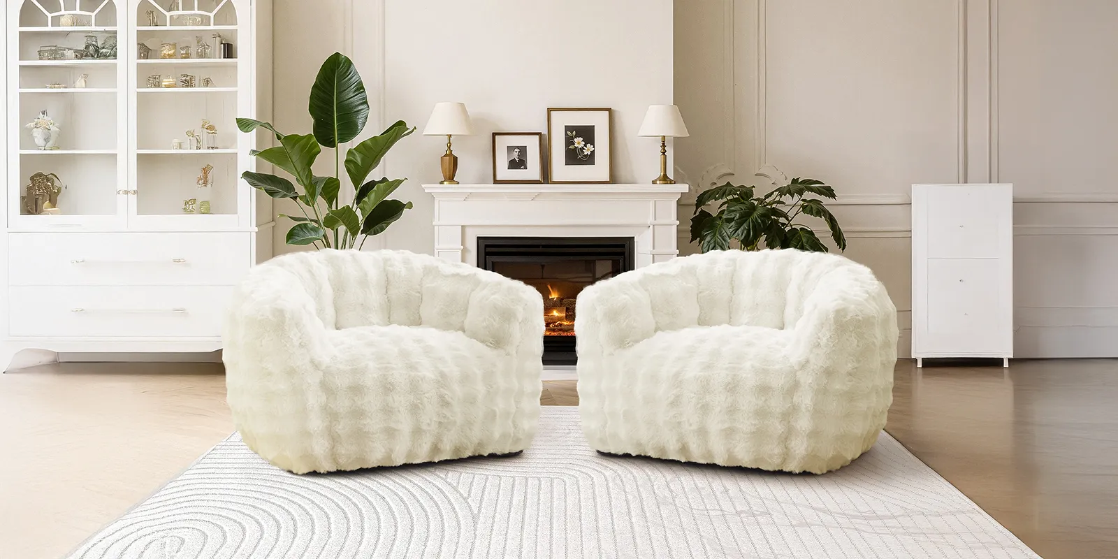 - Luxurious Plush Faux Fur Upholstery: Soft, warm, and inviting texture that adds elegance and coziness to any room décor.