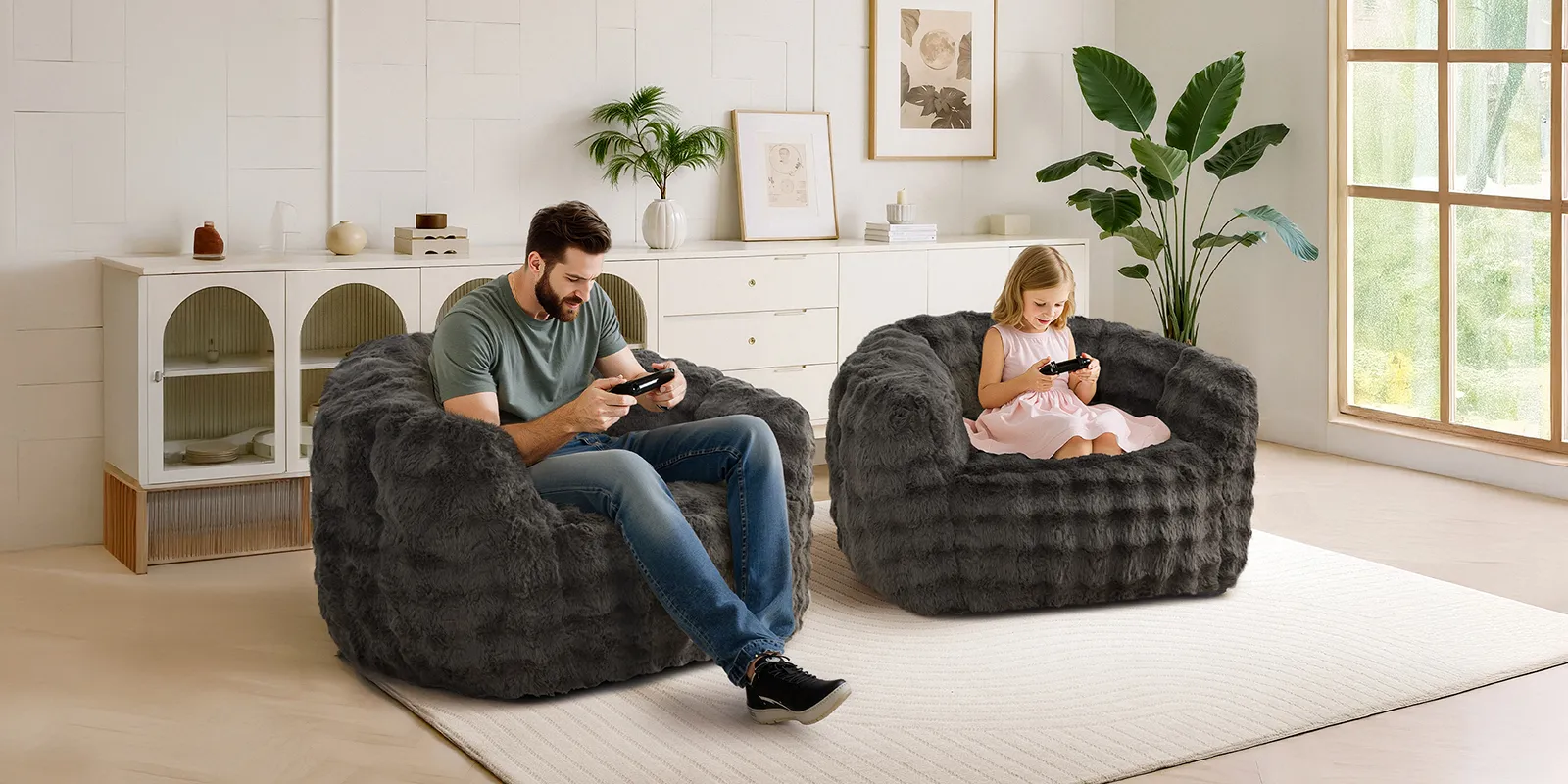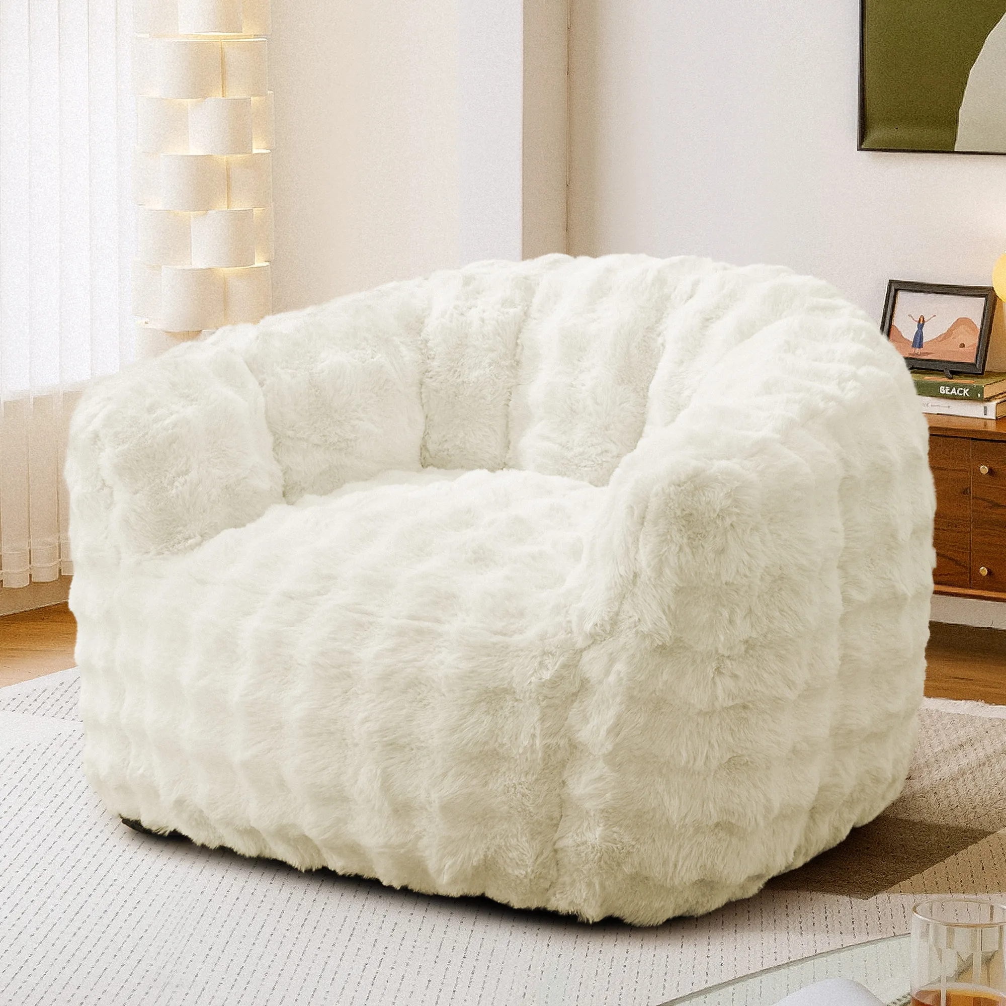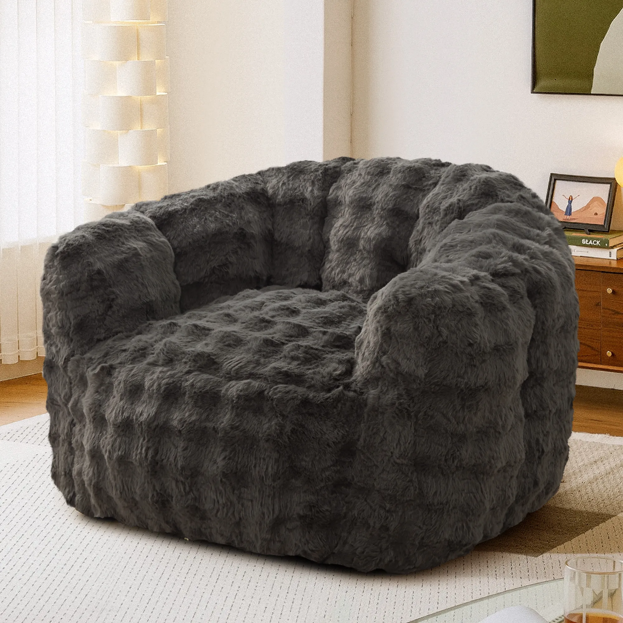 Sink into cloud-like comfort with our giant bean bag sofa, designed for ultimate relaxation. Wrapped in ultra-soft, plush faux fur, it offers a cozy and inviting feel while adding a touch of modern style to your living space. The high-resilience memory foam filling contours to your body, providing exceptional support for lounging, reading, or movie nights. Generously sized with supportive armrests and a deep seat, this beanbag chair is perfect for creating your own comfort corner. Lightweight yet sturdy, it’s easy to move around your home. Ideal for bedrooms, living rooms, or dorms, this armchair blends luxurious comfort with casual charm—making it your go-to spot for unwinding in style.