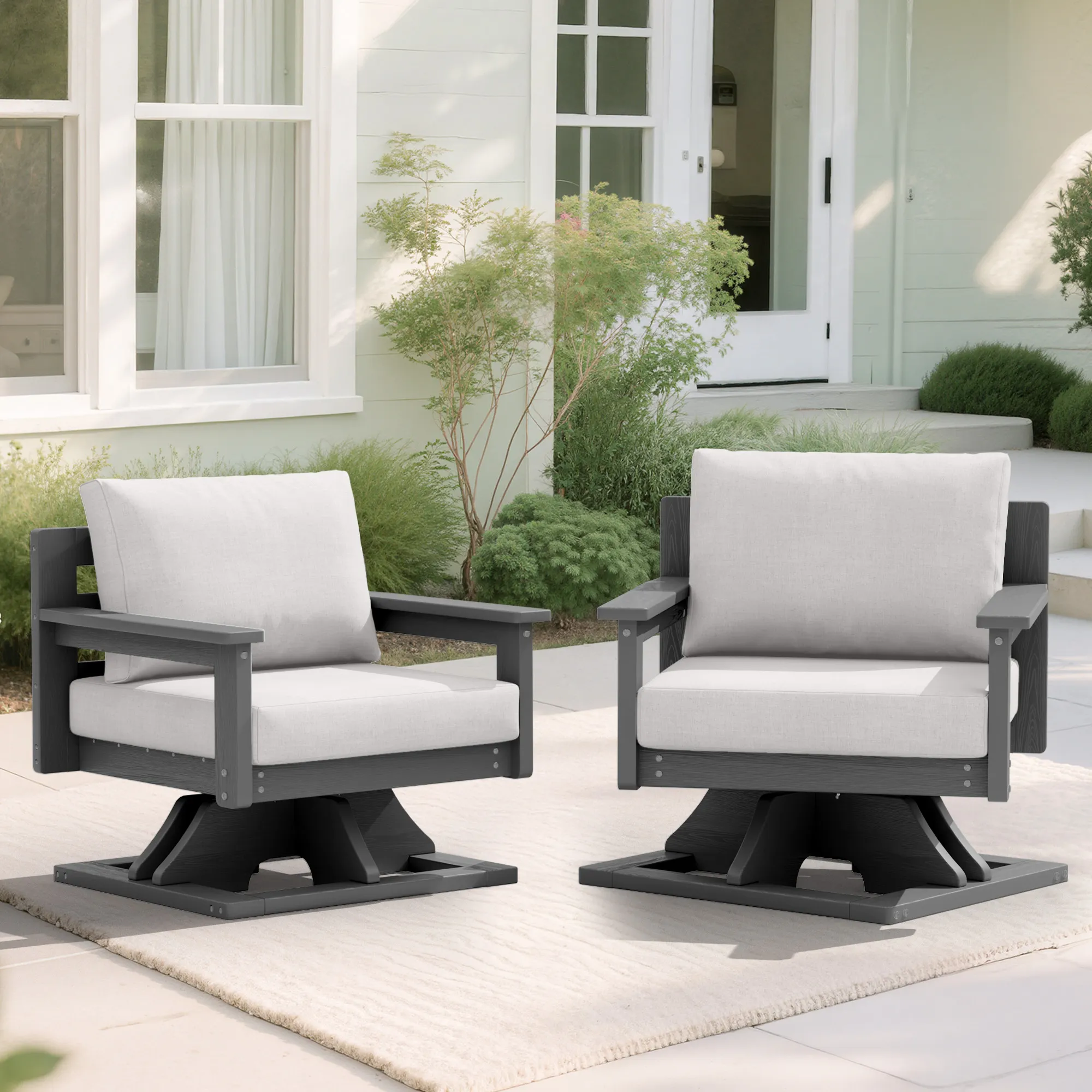 - Durable HDPE Frame: Made from all-weather HDPE poly, our outdoor swivel rocker resists cracking, peeling, or fading and can last for many years.