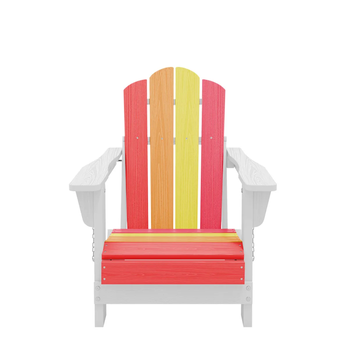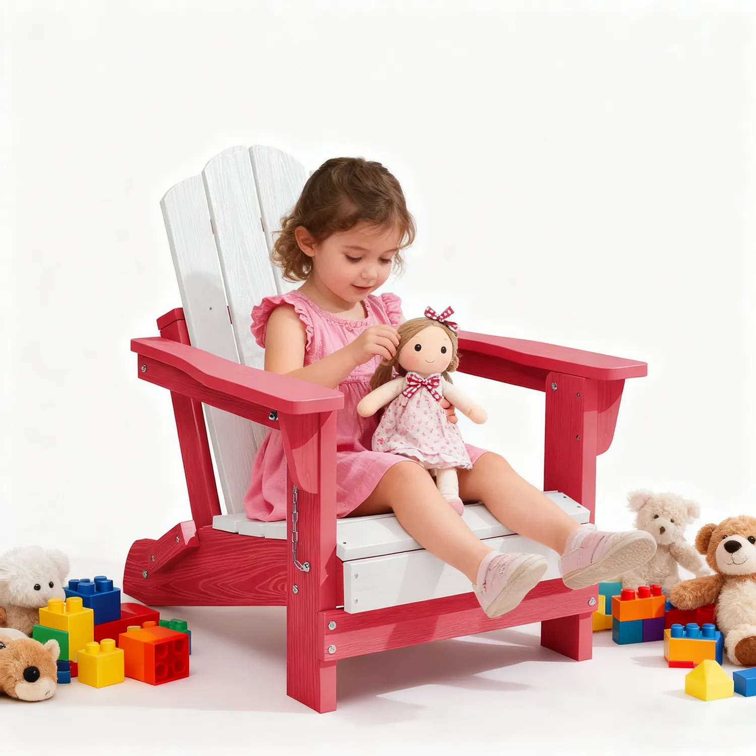The Small Adirondack Chair for Kids is designed with comfort, fun, and convenience in mind. Featuring a vibrant, dual-color combination, this folding chair is made from durable, weather-resistant HDPE lumber that mimics wood. It resists fading, cracking, and peeling, ensuring long-lasting outdoor use. With a slanted backrest and wide armrests, the chair offers a cozy and secure seating experience for children. The foldable design allows for easy storage and portability, making it perfect for patios, decks, or gardens. Enjoy a blend of playful style and practical functionality in one compact chair.