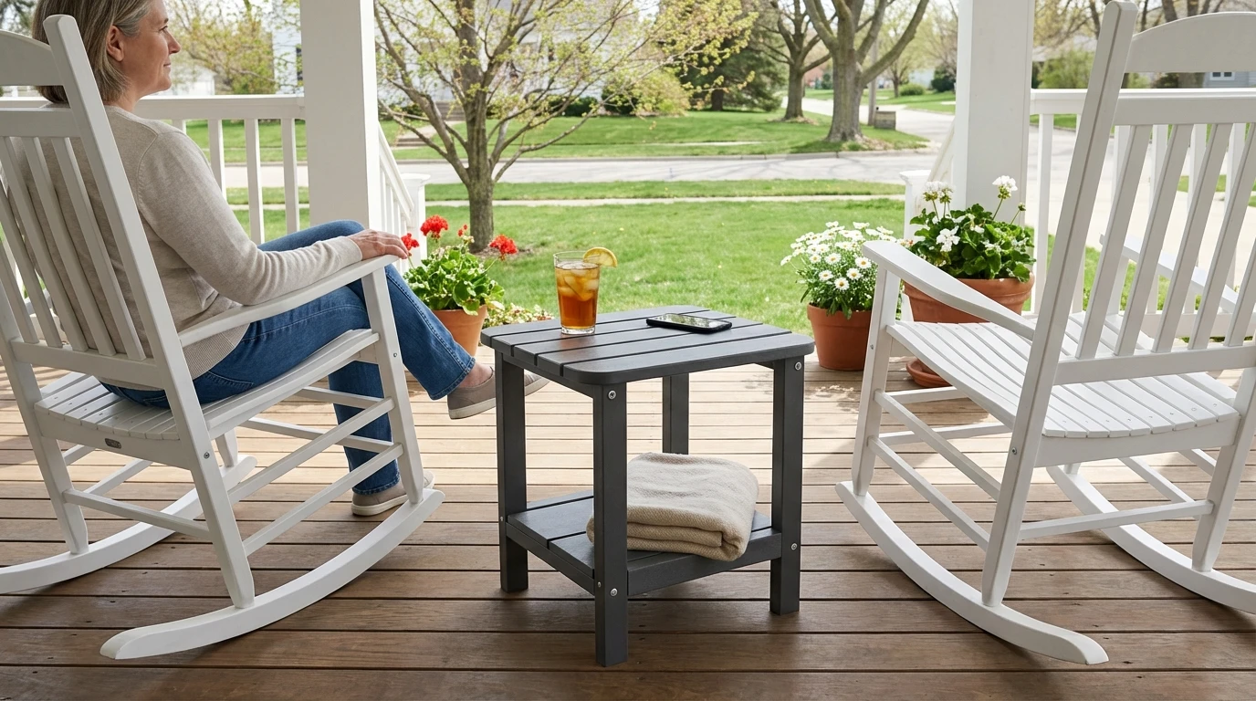 - Low Maintenance: No need to re-stain or paint. The plastic Adirondack side table is easy to clean and requires minimal maintenance.