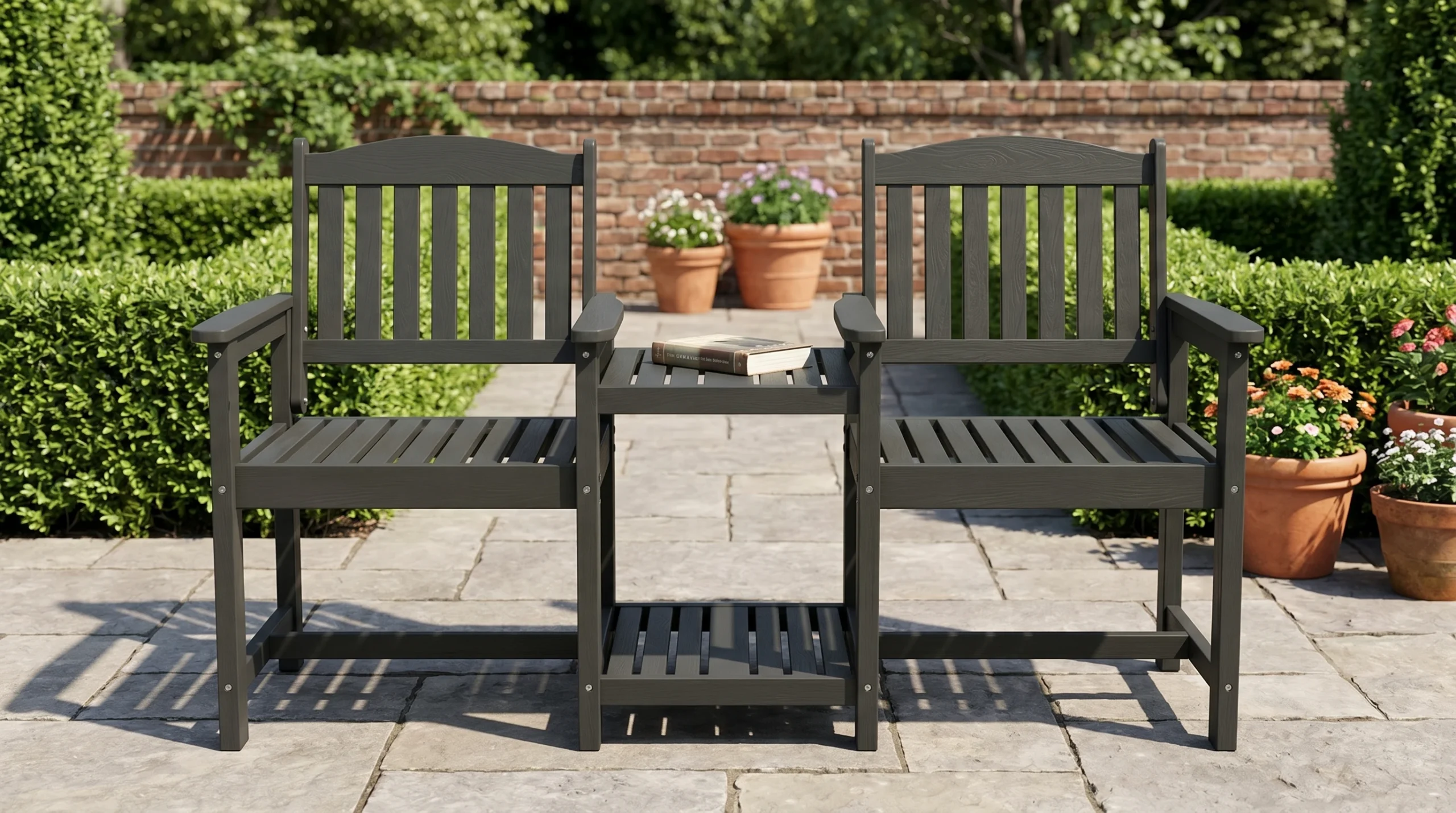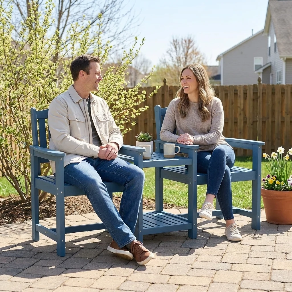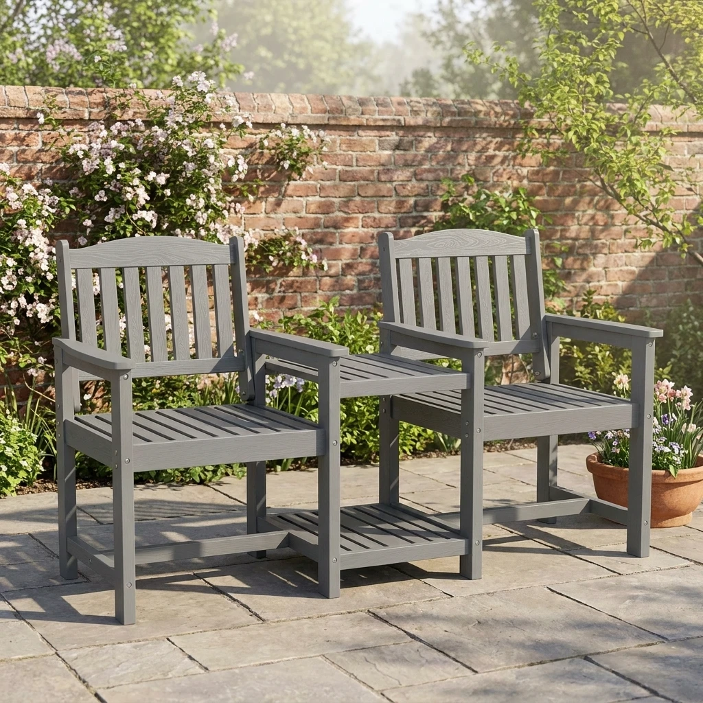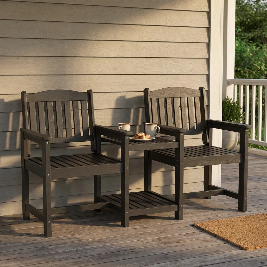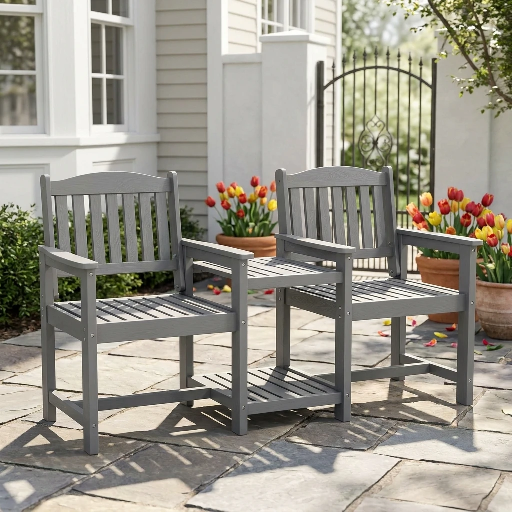 - Cozy Seating for Two: Designed for shared comfort, this connected chair set creates an inviting place for conversations, coffee breaks, and outdoor relaxation.
