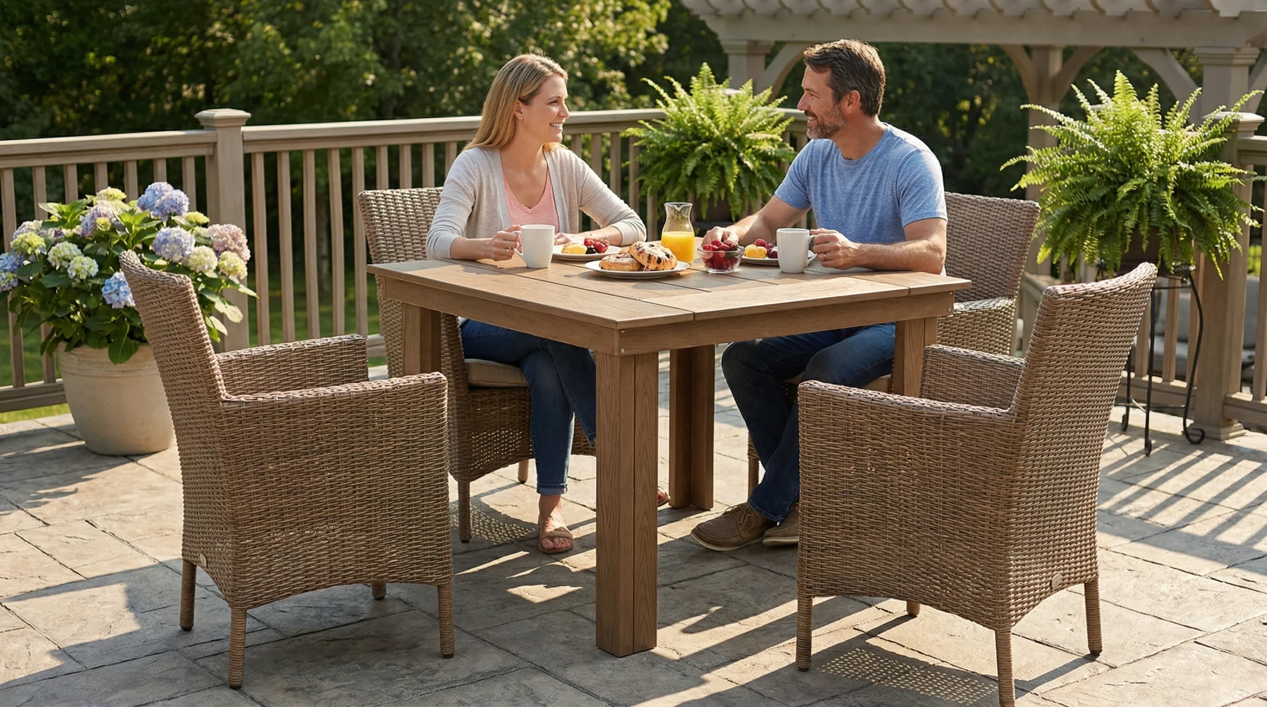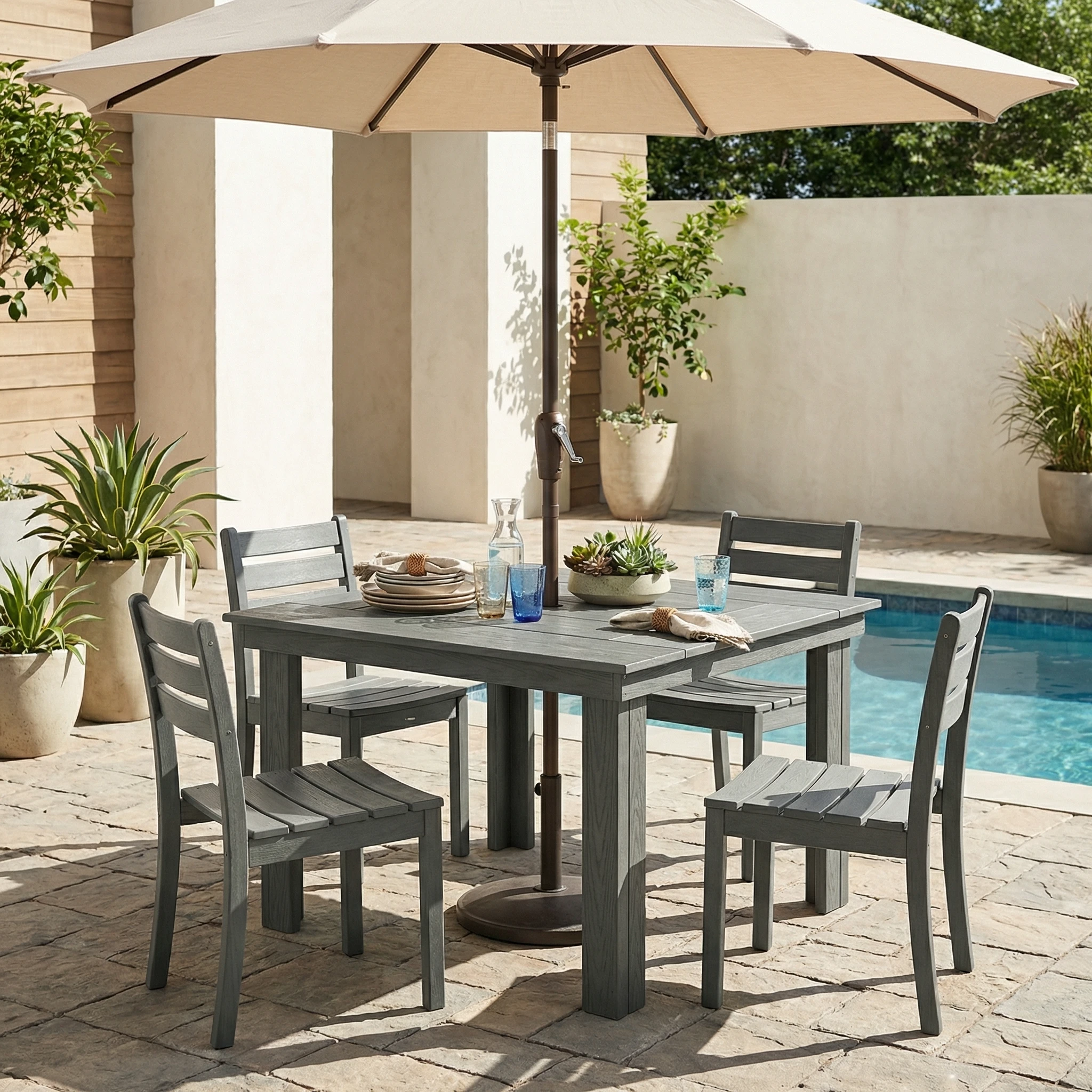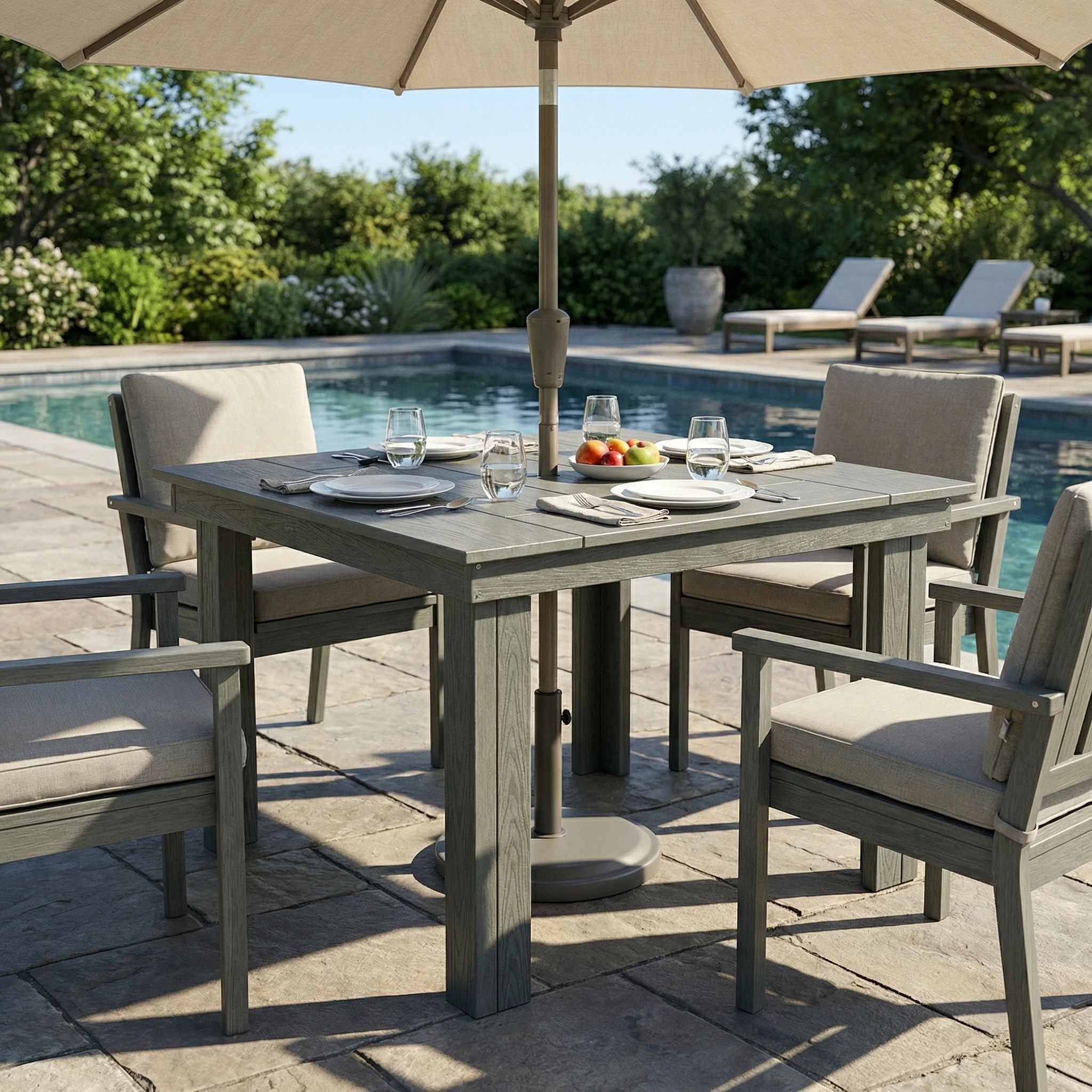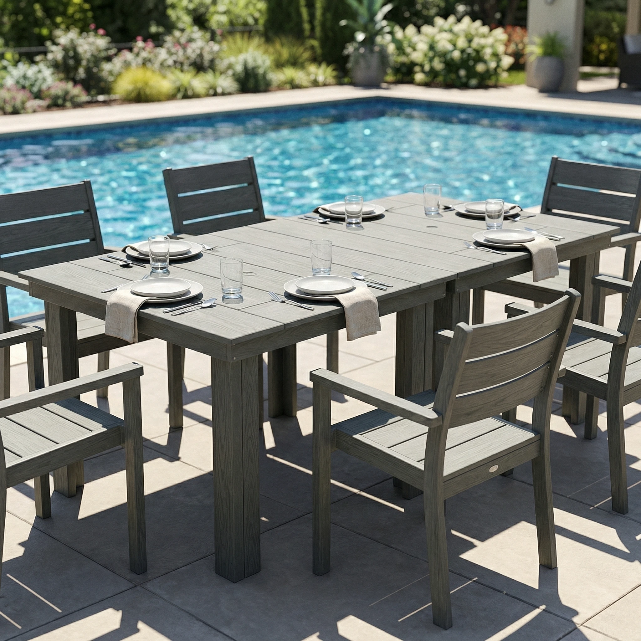 - Realistic Wood-Grain Texture: The wood-look finish adds natural warmth and visual texture for a more refined outdoor dining space.