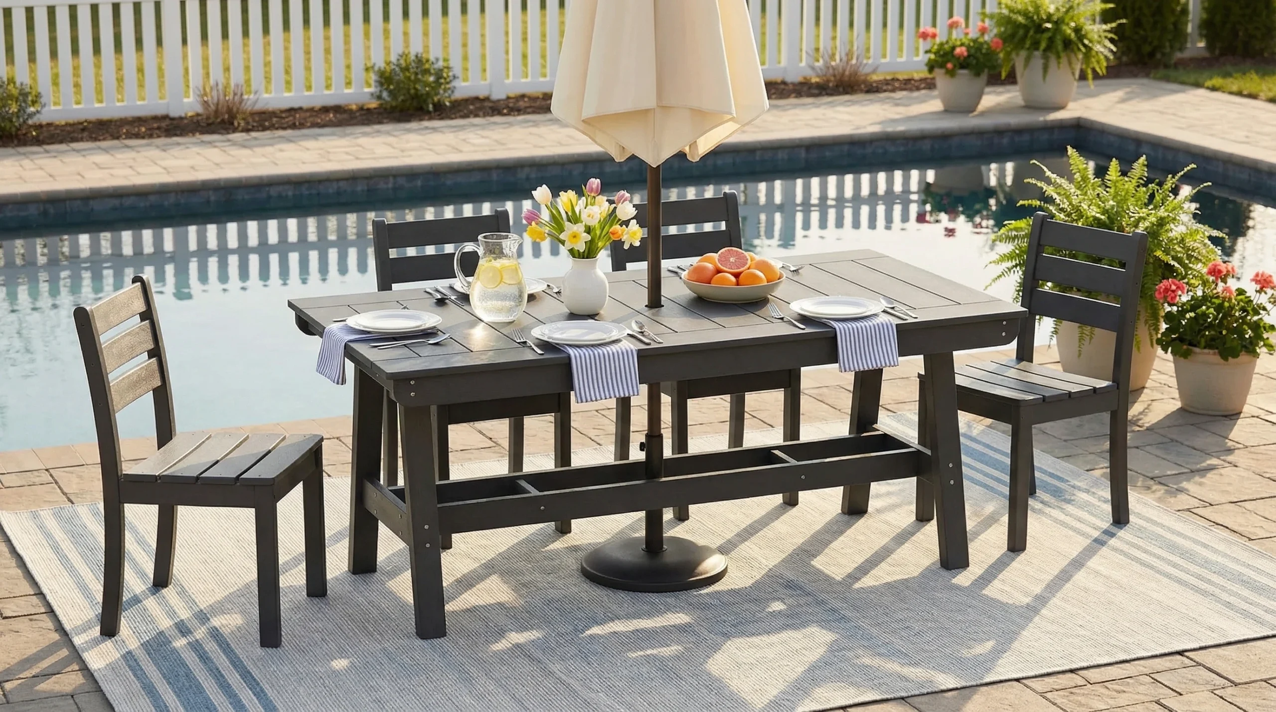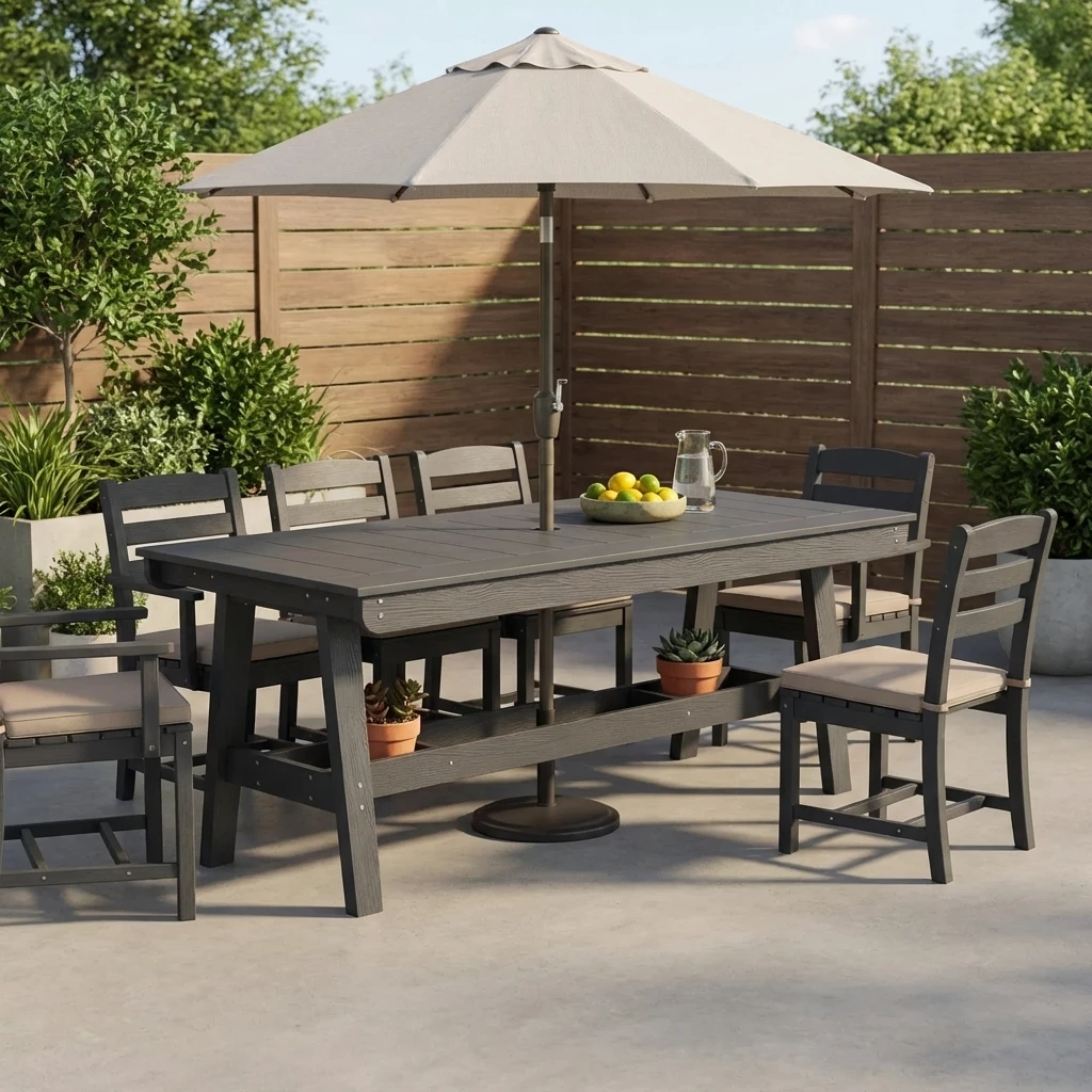 - Umbrella Hole for Added Comfort: A built-in umbrella hole makes it easy to add shade and create a cooler, more comfortable outdoor dining space.